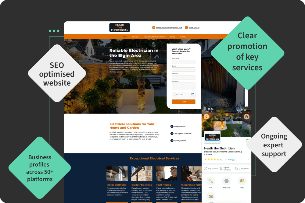 In just 18 months, Heath The Electrician turned his online presence into a consistent pipeline of high-quality enquiries – booking work two months in advance, increasing turnover by 20%, and achieving a £3.26 return for every £1 invested.
