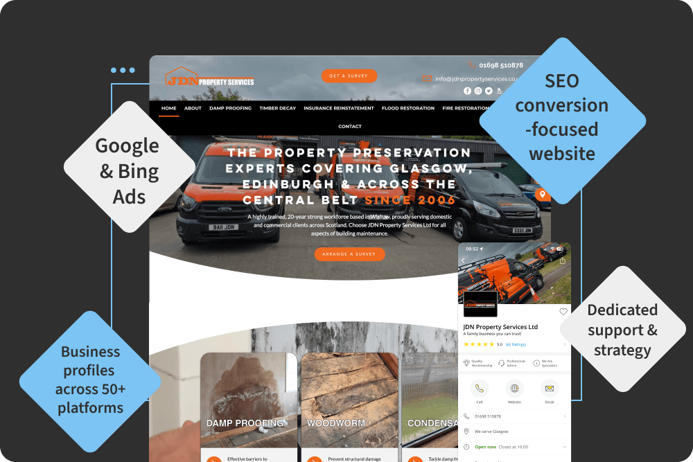 When JDN Property Services first partnered with Yell, they were a small team trying to break through in a crowded market. Like many damp proofing businesses, they were spending long days on site and late nights on admin – with little time or expertise to market themselves effectively.