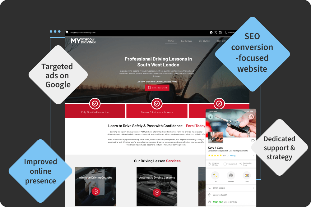 In just 10 months, My School of Driving went from being virtually invisible online to generating a steady, predictable flow of enquiries – filling instructor capacity, increasing profitability, and laying the foundations for expansion across London.