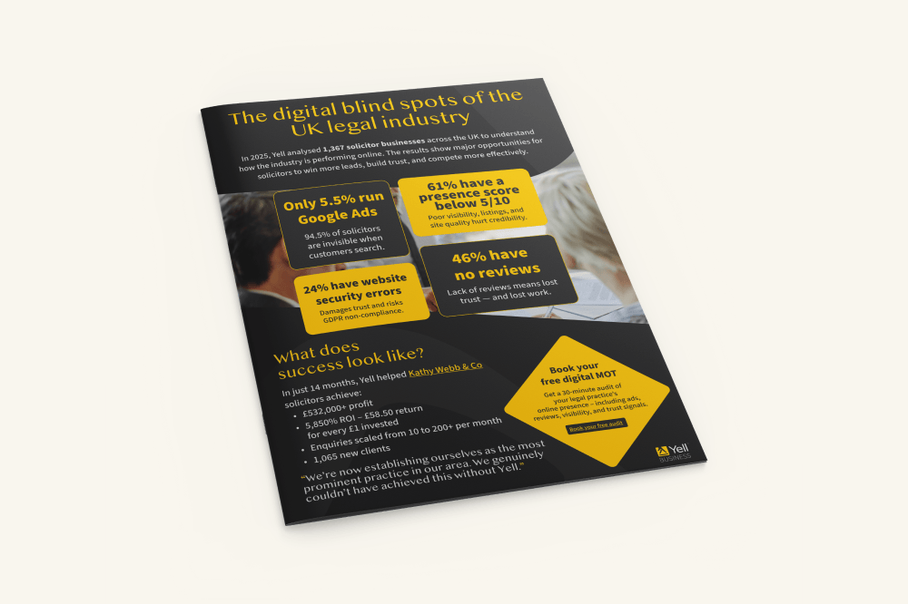 In 2025, Yell analysed 1,367 solicitor businesses across the UK to understand how the industry is performing online.